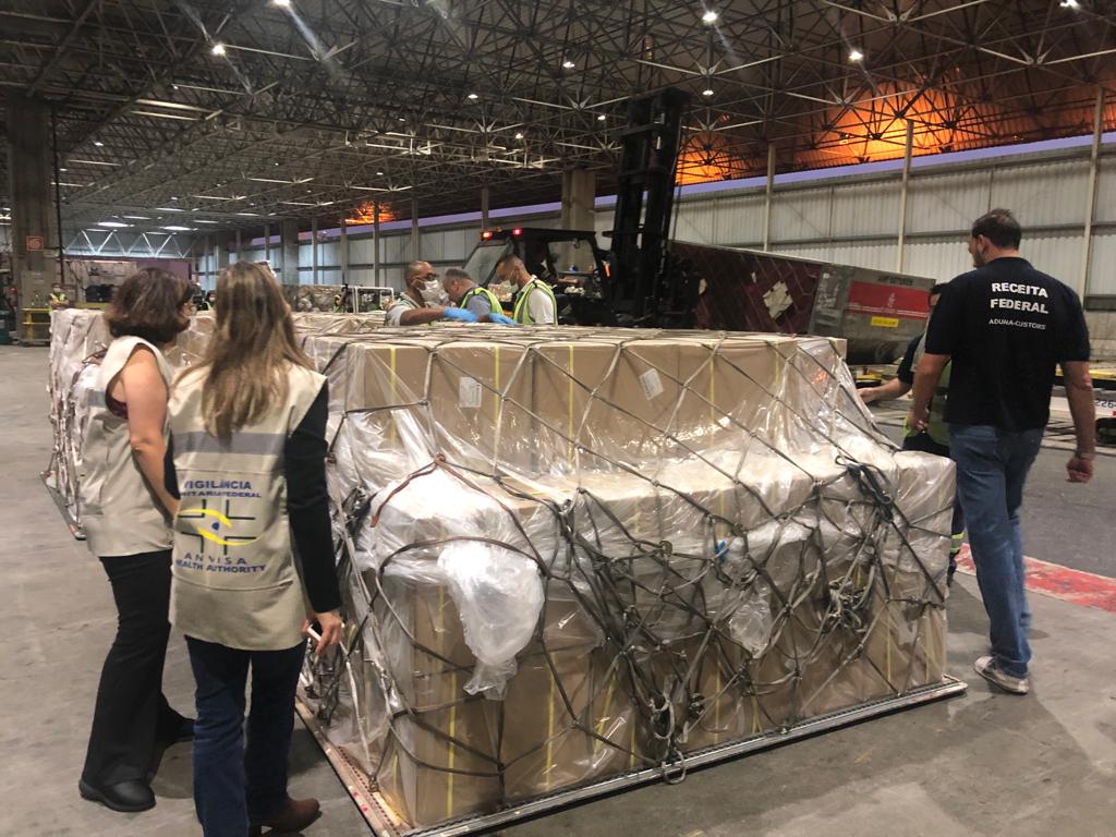 Este foi o primeiro de cinco lotes de kits que serão importados da China, via Guarulhos, ao longo dos próximos 30 dias, totalizando 5 milhões de testes.