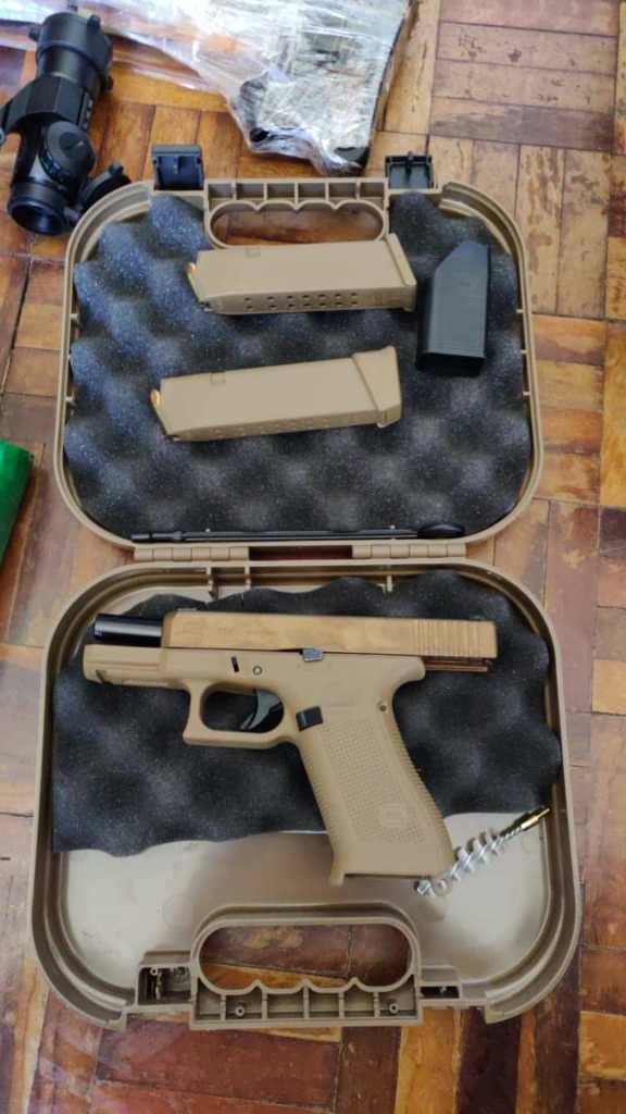Um dos fuzis apreendidos é de calibre 7.62mm e o outro de calibre 5.56mm, ambos de alto poder destrutivo. Também foram apreendidos quatro ‘kits rajada’, acessórios capazes de transformar pistolas comuns em armas de fogo automáticas.