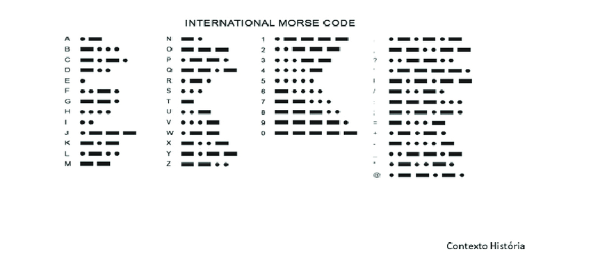 O Código Morse é um sistema de representação de letras, algarismos e sinais de pontuação através de um sinal codificado enviado de modo intermitente. Foi desenvolvido por Samuel Morse em 1835, criador do telégrafo elétrico, dispositivo que utiliza correntes elétricas para controlar eletroímãs que atuam na emissão e na recepção de sinais. O código Morse internacional é composto de seis elementos: