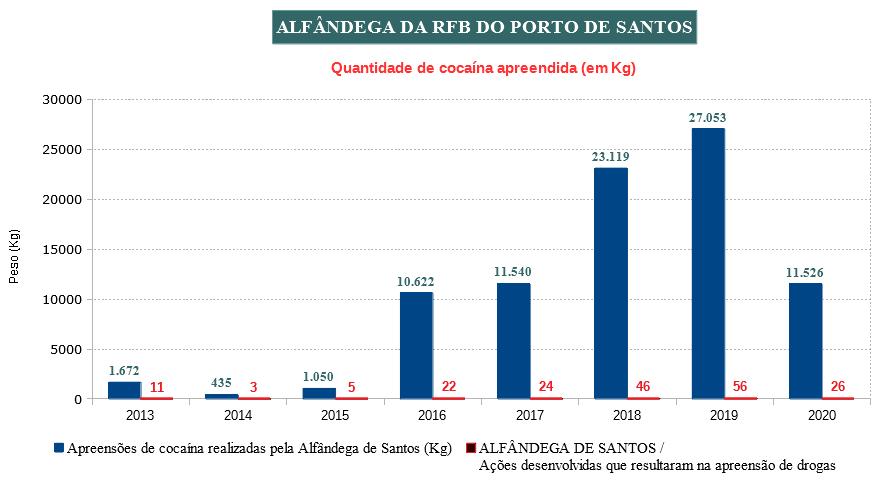 A droga interceptada pela Alfândega da Receita Federal em Santos foi entregue à Polícia Federal, que acompanhou a operação a partir da localização da droga, e prosseguirá com as investigações a partir das informações fornecidas pela Receita Federal.