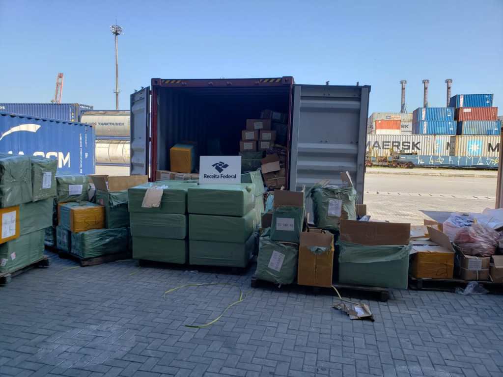 A Receita Federal, em uma ação iniciada na terça-feira, 4 de agosto, apreendeu 21,6 toneladas de produtos contrafeitos, acondicionadas em um contêiner de 40 pés. Como ocorreu na apreensão do dia 29 de julho, trata-se de uma carga de passagem pelo território nacional, vinda da China, com destino ao Porto de Montevidéu, no Uruguai.