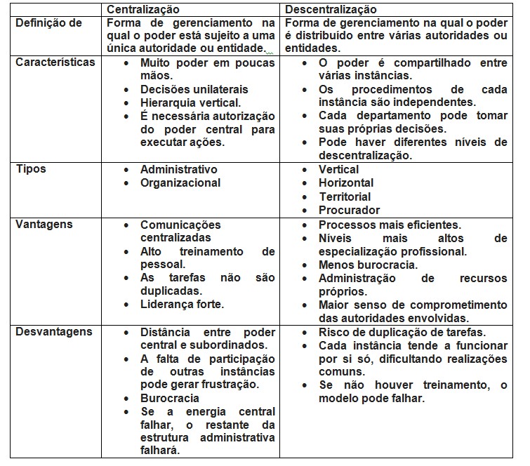 Diferenças fundamentais entre Descentralização e Desconcentração