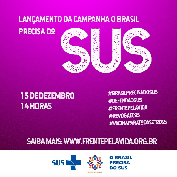 CAMPANHA O BRASIL PRECISA DO SUS, HOJE, DIA 15, ÀS 14 H