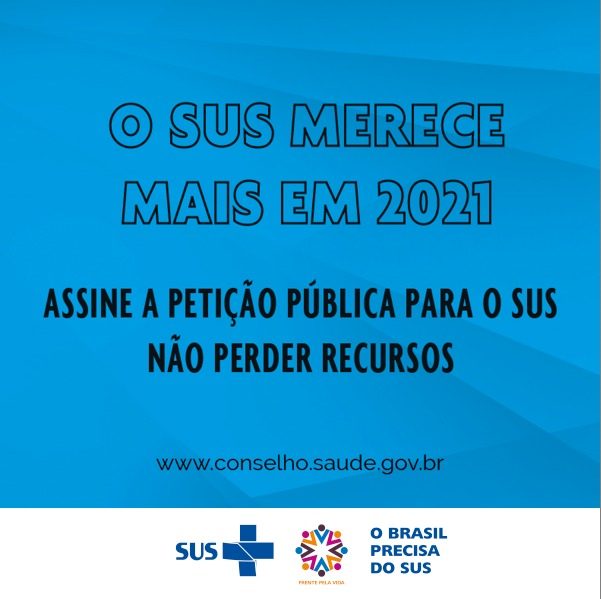 Assine a Petição Pública para mais recursos para o SUS em 2021: http://chng.it/fzP8BLMnfR