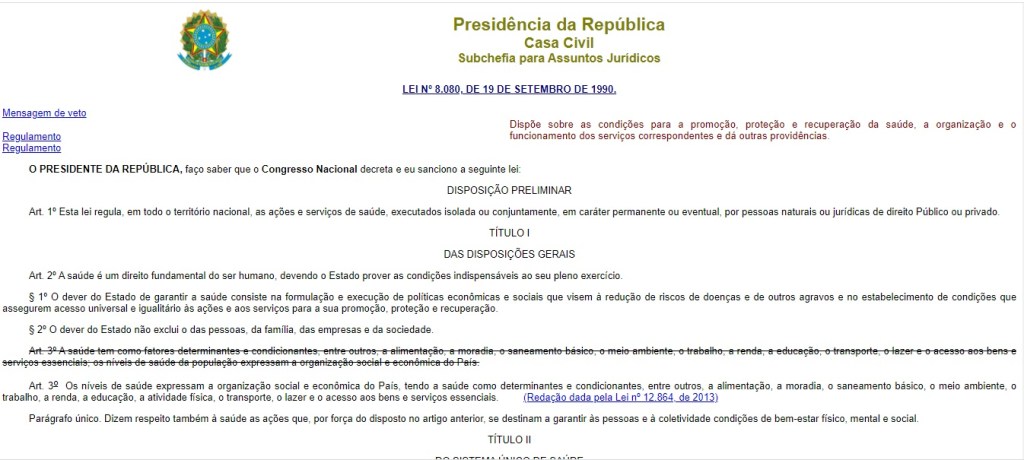 Além disso, conforme a Lei Orgânica do SUS, Lei Federal 8.080,