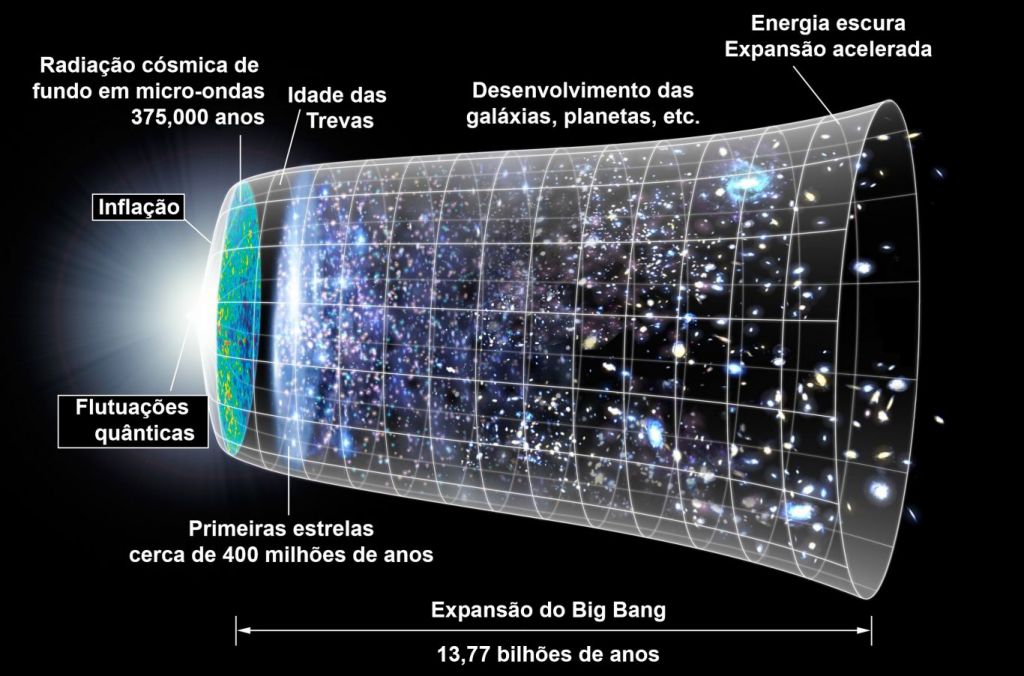 Na sua teoria da relatividade geral em quatro dimensões (três de espaço mais o tempo), a geometria do espaço-tempo (lado esquerdo das equações de campo) é igualada matematicamente com seu conteúdo de matéria e energia (lado direito). O resultado forte e que se comprova a cada nova observação, do universo profundo, de objetos como os buracos negros e das ondas gravitacionais, ainda faz restar um mistério: a natureza da energia escura, responsável por aumentar a velocidade com que o Universo se expande. Para dar conta de descrever nosso universo se expandindo aceleradamente, uma constante cosmológica foi acrescentada às equações de Einstein.