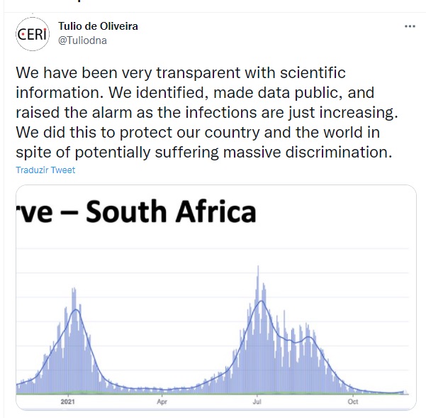 “Temos sido muito transparentes com as informações científicas. Identificamos, tornamos os dados públicos e alertamos, pois as infecções estão aumentando. Fizemos isso para proteger nosso país e o mundo, apesar de sofrermos potencialmente uma discriminação massiva” disse Tulio.