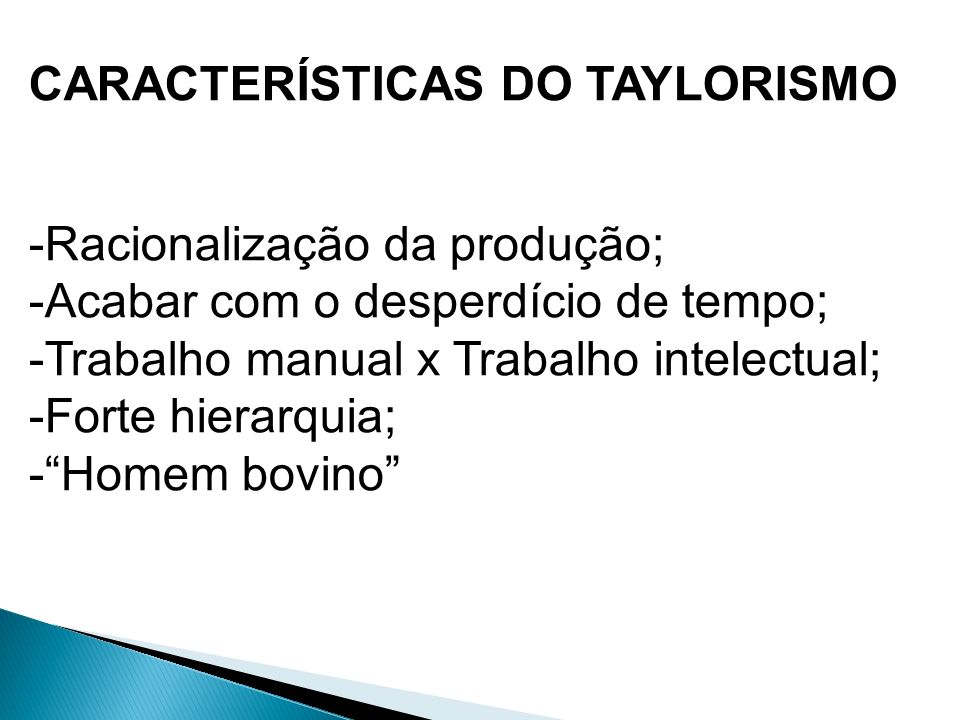 Neste contexto, o taylorismo surge em fins do século XIX e início do século XX e passa a desenvolver e sistematizar princípios de racionalização produtiva do trabalho […] a organização capitalista da produção esbarrou, desde o início, na autonomia dos produtores diretos e em sua capacidade de definir a seqüência das tarefas e os ritmos de trabalho, que resultava numa multiplicidade de formas de produzir. Para o autor, com o intuito de reduzir o domínio dos operários, Taylor desenvolveu estudos sobre os tempos e movimentos utilizando, pela primeira vez, detalhadas planilhas e cronômetro (Loch, Correia, 2014, p.6-7).