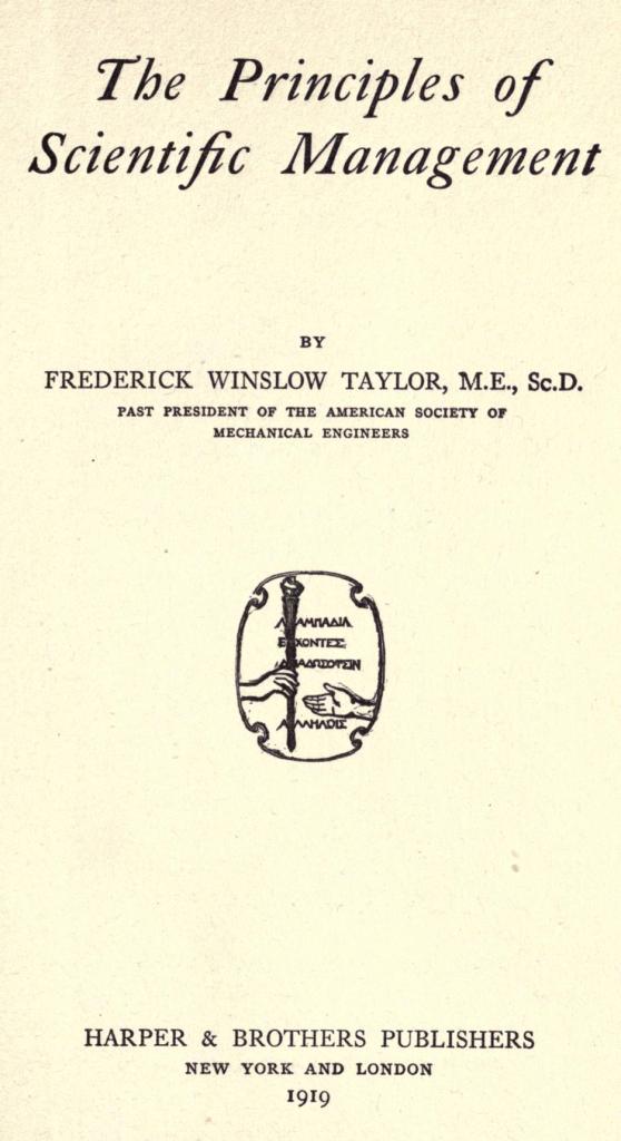 Talvez o fato mais marcante da vida de Taylor seja a publicação, em 1911, de Princípios de Administração Científica. Com esse livro, Taylor propõe que administrar uma empresa deve ser tido como uma ciência. A ideia principal do livro é a racionalização do trabalho, que envolve a divisão de funções dos trabalhadores; com isso Taylor critica fortemente a Administração por incentivo e iniciativa, que acontece quando um trabalhador por iniciativa própria sugere ao patrão ideias que possam dar lucro à empresa, incentivando seu superior a dar-lhe uma recompensa ou uma gratificação pelo esforço demonstrado; isso é criticado por Taylor, pois, uma vez que se recompensa um subordinado por suas ideias ou atos, torna-se dependente deles.