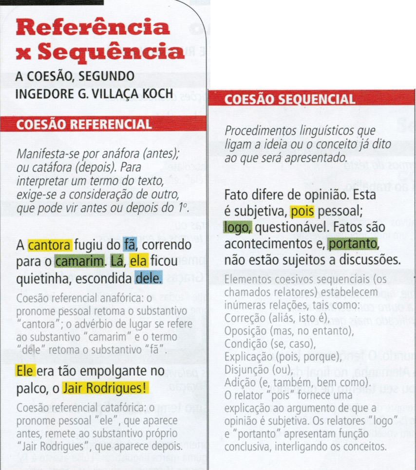 Coesão referencial e coesão sequencial – http://mundoeducacao.com/redacao/coes…
