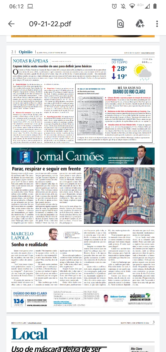 21 de setembro de 2022: Parar, respirar e seguir em frente – https://www.j1diario.com.br/parar-respirar-e-seguir-em-frente-por-antonio-archangelo/ (Diário do Rio Claro)