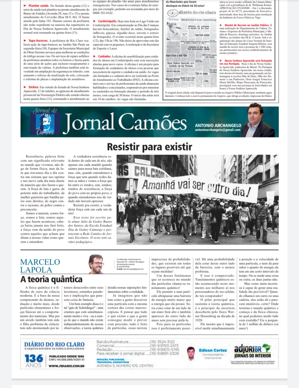 13 de outubro de 2022: Resistir para existir – https://www.j1diario.com.br/resistir-para-existir-por-antonio-archangelo/ (Diário do Rio Claro)