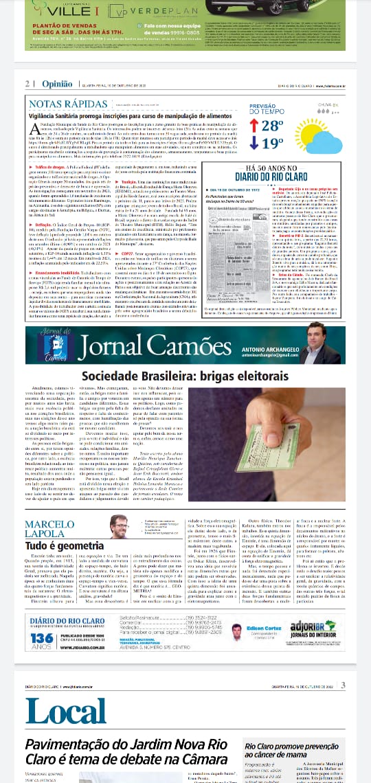 30 de novembro de 2022: Talvez por esse Caminho as Coisas Não Mudem – https://www.j1diario.com.br/talvez-por-esse-caminho-as-coisas-nao-mudem-antonio-archangelo/ (Diário do Rio Claro)