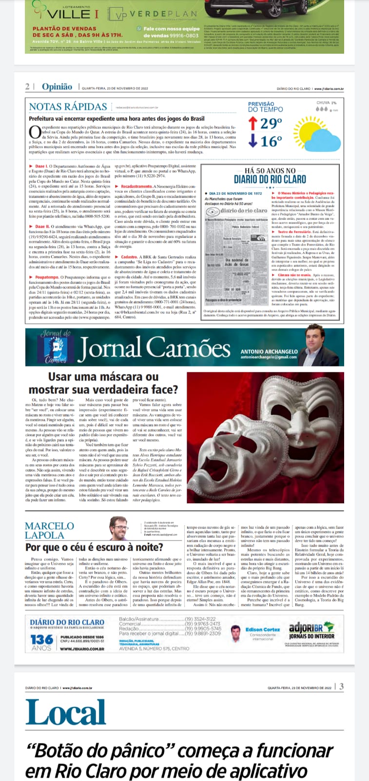 07 de dezembro de 2022: Protagonismo – https://www.j1diario.com.br/protagonismo-por-antonio-archangelo/ (Diário do Rio Claro)