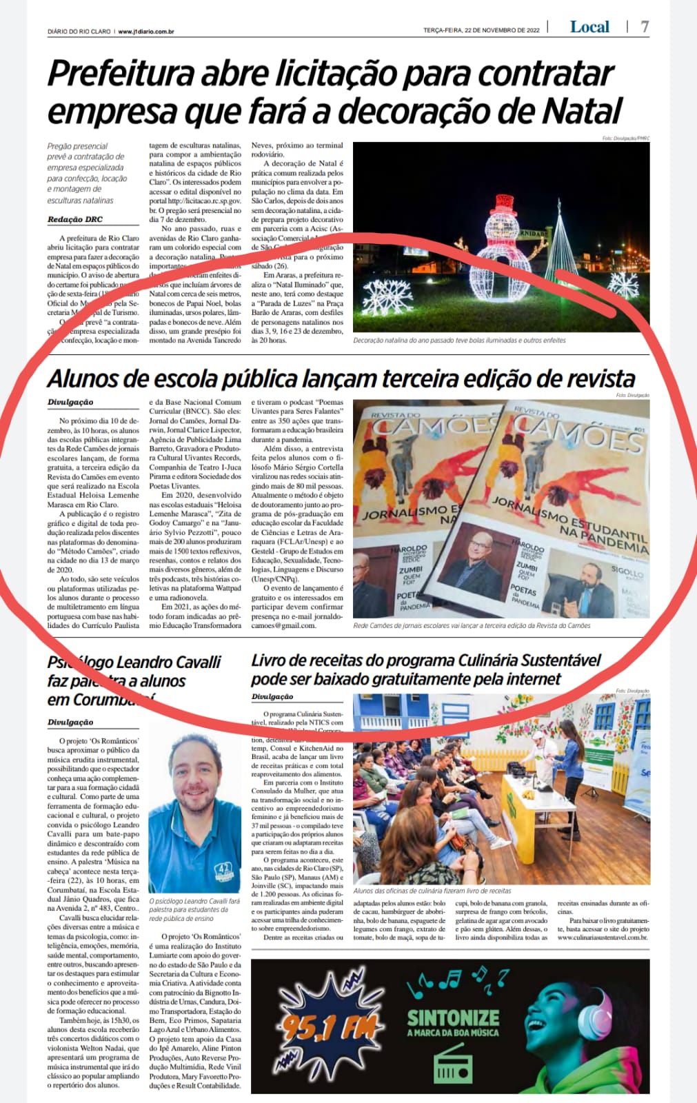 26 de novembro de 2022: Alunos lançam terceira edição da Revista do Camões (JP News de Rio Claro) –