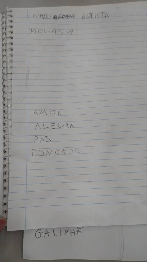 - Instrua cada grupo a caminhar pela escola e coletar palavras que considerem interessantes para a música. Diga-lhes para escrever essas palavras em seus cadernos.