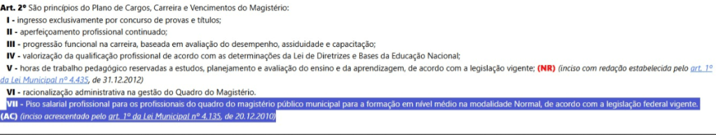 Isso porque o §3º do Artigo 20 da Lei do Magistério Municipal — agora revogado pela Prefeitura — era o único dispositivo legal que explicitava a aplicação dos percentuais de 5% (por grau) e 10% (por nível) sobre o Anexo III, conforme redação da Lei Municipal nº 4.435/2012. Com a remoção desse parágrafo, caem também os efeitos diretos dos incisos I e II, que detalhavam os percentuais de valorização.