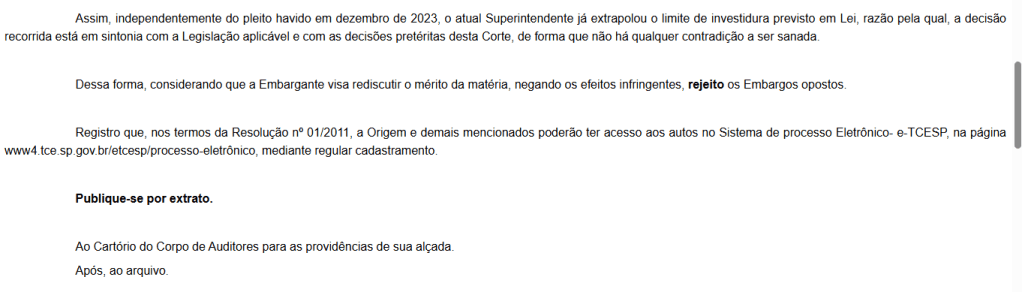 Leia o decisão dos embargos em: https://jurisprudencia.tce.sp.gov.br/arqs_juri/html/8/6/8/20062868.html